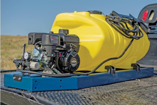 The 60 Gallon 3.5-4C Gas Skid Sprayer delivers superior liquid application in a truly universal platform. The UV resistant, molded polymer tank has a 5 inch tethered lid for easy access and is completely drainable. This unit features a Briggs & Stratton 127cc Gas Engine with a 4 Roller Cast Iron Pump. The Deluxe Pistol Grip Spraygun distributes up to 45 feet horizontal spray, 30 feet of vertical spray and comes with 25 feet of 3/8 inch hose. This Utility Sprayer is built on a welded powder coated steel chassis and is capable of being mounted directly in a pickup or utility bed. This mobile sprayer is a high performance mid-level sprayer that allows easy, accurate and consistent liquid application of lawn care products. Designed to go anywhere to control weeds, insects and diseases on lawns, acreages, pastures, as well as spray trees and control burns.