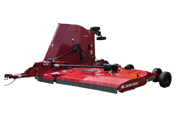 The Bush Hog® 2120 Flex-Wing Rotary Cutter is designed to cut grass, weeds, and light brush up to 2” in diameter. The perfect cutter for maintaining large pastures, open parks, and airports, where clipping distribution is paramount for presenting a clean, manicured appearance. Fully-baffled decks increase directional air flow allowing the blades to guide clippings across the entire width of the cutter. EZ-clean decks, EZ-adjust leveling rods, EZ-lube drivelines, and multiple grease points, make maintaining the 2120 a snap. Invest in the 2120, and it will reward you with years of excellent performance and dependable service. The 2120 comes standard with Distribution Baffles, along with your choice of Perma-Level or 2-5/8” Ball Hitch, 540 or 1,000RPM CV Input Drivelines, Center Dual or Walking Tandem Axles, Wing Single, Dual, or Walking Tandem Axles, 5 Tire Selections, and Single or Double Row Safety Chains.