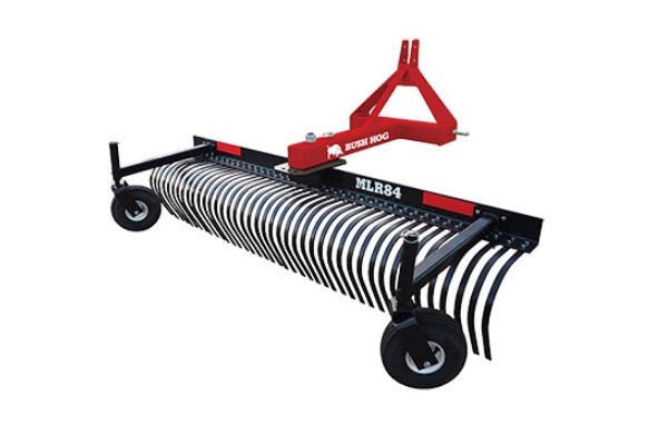 Bush Hog’s line of compact, light and medium duty landscape rakes are perfect for removing brush and debris, or giving an area that well-groomed look. All are built to last, with tough tubular construction and heat-treated tines. Each unit features 360 degree pivot ability with angle adjustments. Rated for tractors up to 50 PTO HP, our reliable landscape rakes come in widths from 6 to 8 feet.