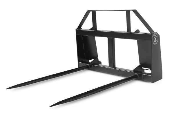 Xtreme Duty Dual Bale Spears are manufactured for skid steer loaders and tractor loaders by Construction Attachments, Inc. These specialty attachments are designed to transport large round and square bales.