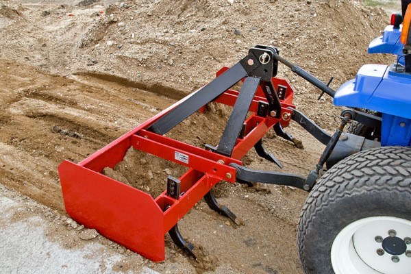 The scarifier shanks are heat treated and are easily adjusted for depth. The Farm King Box Scraper features a replaceable / reversible back to back cutting edge as well as replaceable / reversible scarifier shanks for forward and reverse use.