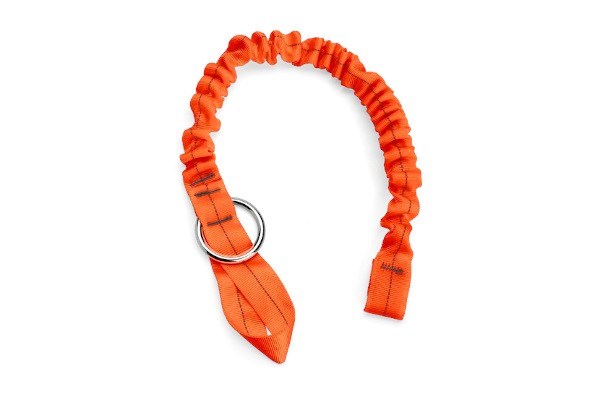 An elastic strap to be used together with a chainsaw hook for connecting the chainsaw to a harness belt. Measures 0.5 m when relaxed and 1.25 m fully stretched out.