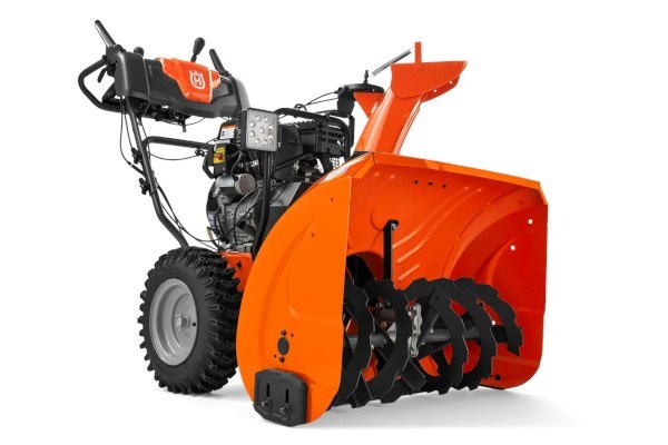 Heavy-duty ribbon auger mixes air into snow to help impeller fan churn through frozen or wet snow for a two-stage clearing system