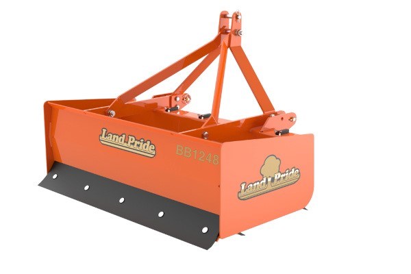 The Land Pride BB1248, BB1254, BB1260, BB1266 & BB1272 Box Scrapers are designed for Category 1 - 3-point hitch or Quick-Hitch System mounting to tractors in the 30 hp range. These Box Scrapers are ideal for ripping, leveling, finish grading, and back-filling applications and offer forward and reverse cutting edges. The rear back-fill blade allows for back-filling trenches or foundations. The stout 15-3/8" moldboard holds its shape under heavy loads.