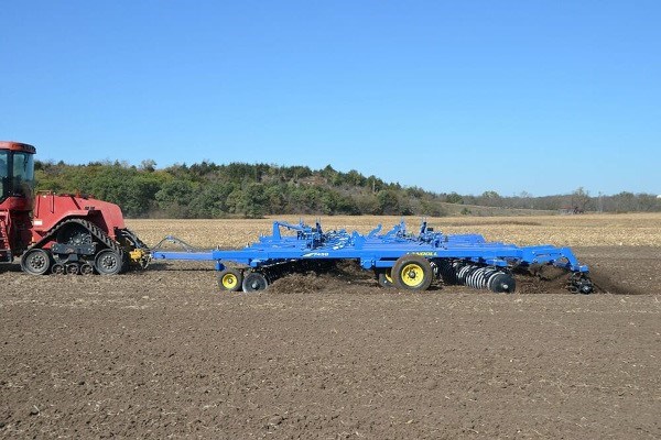 The Landoll 7400 VT Plus Series is built in true Landoll style…precision, laser cut frame components that embrace the technology of robotic welding to its fullest. Durability is built-in, not added on. Incorporation of UHMW polymer in the lift axles provides a maintenance-free feature that eliminates daily greasing. Trunnion mount bearings are used throughout the disc assemblies and are covered by a 3-year warranty. Gang angles are fixed at 10 degrees on the front and rear and disc blades are spaced at 7” on all gangs. The blades are 22” or 24″ low concavity; blade thickness is ¼”.