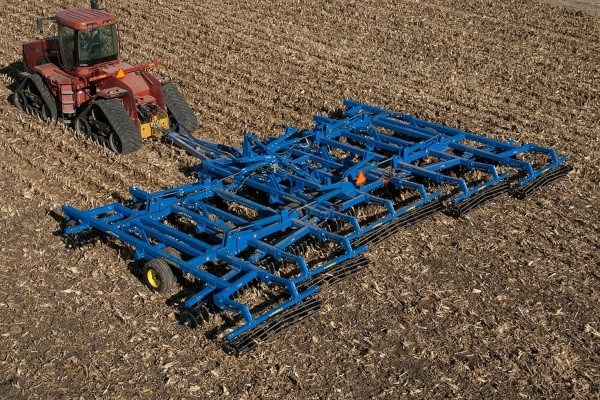 The Landoll 7400 VT Plus Series is built in true Landoll style…precision, laser cut frame components that embrace the technology of robotic welding to its fullest. Durability is built-in, not added on. Incorporation of UHMW polymer in the lift axles provides a maintenance-free feature that eliminates daily greasing. Trunnion mount bearings are used throughout the disc assemblies and are covered by a 3-year warranty. Gang angles are fixed at 10 degrees on the front and rear and disc blades are spaced at 7” on all gangs. The blades are 22” or 24″ low concavity; blade thickness is ¼”.