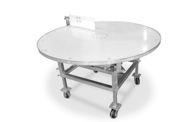 Our rotary flat tables can hold bags or unpacked produce during the packing process to help with the flow of operations. Built on wheels, they can easily be moved around to where the need is.