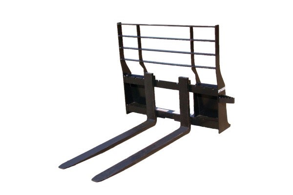The PF series pallet forks can be used in a variety of applications, from around the farm to nurseries to construction sites, the PF series forks will save you time and money. Quickly and conveniently convert your tractor mounted or skid steer loader with a universal skid steer frame into a material handler and expand the utilization of existing machines. With a lift capacity of 4,000 pounds, the PF series pallet forks will handle the lifting for you.