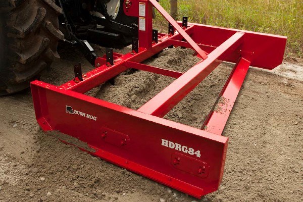 The new Bush Hog® Heavy Duty Road Grader is available in 7-feet and 8-feet operating widths. The HDRG’s heavy duty construction boasts a weight of up to 828-lbs., enabling it to tackle any grading job. The HDRG’s design features all-welded construction, a max rating up to 90 HP, and two offset and angled scraper blades that are vertically adjustable. The vertical blade adjustment system provides the user the ability to adjust the cutting depth to compensate for blade wear and tear. Heat treated plow point scarifier shanks enable the HDRG to rip through most any earthen surface when grading driveways, fire lanes, and maintaining/building dirt or gravel roads.