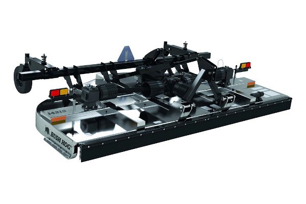 The Bush Hog 14215 is a row crop and pasture maintenance beast! This 15’ Multi-Spindle makes short work of cutting unwanted crop residue and pasture overgrowth. This cutter differs from conventional Multi-Spindle Cutters in that it incorporates overlapped but non-timed cutting circles. This design allows for each gearbox to have Slip-Clutch protection in lieu of rigid cross-shafts found on other Multi-Spindle cutters. Axle arms can be positioned precisely to specific row spacings. The galvanized deck provides extra rust protection in environments such as crop fields and pastures where fertilizer and herbicides are often used. Available as a Lift-Type, 1000RPM unit with Round Blade Pan and 21” Laminated Tires only. Due to its weight and overall size, this cutter requires at least a 125HP tractor to operate effectively.