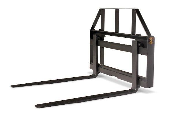 Pallet Forks designed for compact loaders up to 50 horsepower with top guard designed for optimum visibility for the operator. Adjustable fork widths and a frame size of 45 1/2″ W x 29 1/2″ H. Forged tines meet ITA standards.