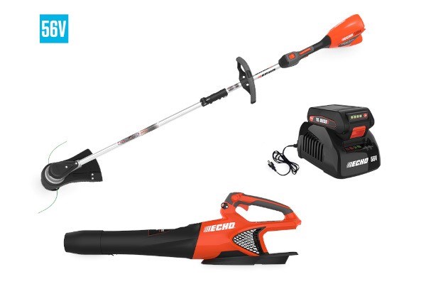 The DCP-BVRVS1B contains two ECHO 56V Battery System products in one convenient package. The Kit consists of the DSRM-2100 Trimmer with Speed-Feed® 400 cutting head and the DPB-2500 Blower along with a 2.5Ah battery and standard charger.