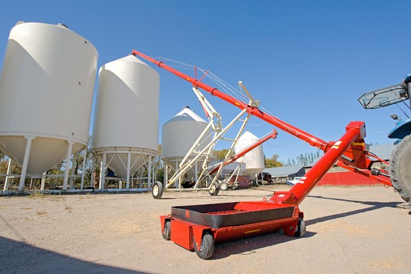 Using the auger-mounted hydraulic controls, the swing away auger can be lifted into position for transport and the hopper can be moved back and forth. This system removes most of the physical labor that was once required during grain handling.