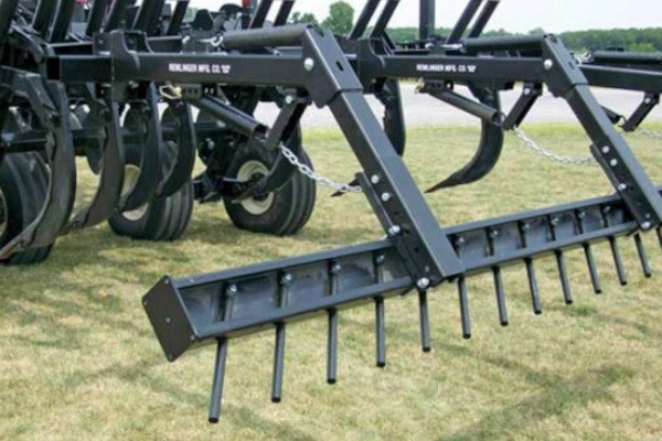 The Remlinger Jumbo 1 Bar Harrow mounts on primary tillage tools and chisel plows. The attachment breaks clods, churns the soil and incorporates chemicals.