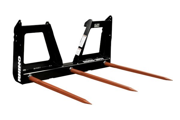 Rhino bale spears are built Rhino tough. With a lift capacity of Over 4,000 lb. and capable of being mounted on a universal skid steer frame, these bale spears are designed to lift, transport and stack round or square bales of hay or other organic matter.