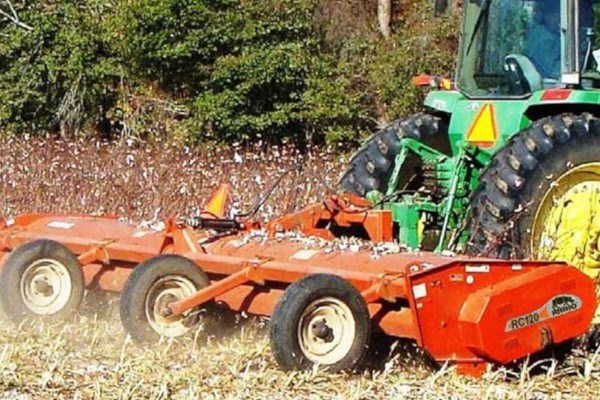 RC flail shredders feature a five-year limited gearbox warranty and are available with a three-point lift, semi-mount or pull-type hitch in shredding widths of 15', 18', 20' and 25'. The drivetrain is built tough with standard heavy-duty features including a Cat 5 or Cat 6 main driveline, a 207 HP 1000 RPM gearbox, and 5 x 5 v-banded drive belts to handle the power of larger tractors in tough conditions. The shredder housing is a formed 3/16" thick hood with internal 3/16" stiffeners at critical wear areas that add structural strength to the mainframe and extend the life of the shredder. The specially designed housing and 12,620 FPM* blade tip speeds help assure maximum crop shredding and insect habitat destruction. The shredder blades are hard-surfaced with tungsten carbide for maximum wear life and provide more cuts per foot of travel than most competitive shredders. The resulting "mulch" speeds the rate of material decomposition and nutrient return to the soil while providing ground cover to help prevent erosion caused by wind and water.