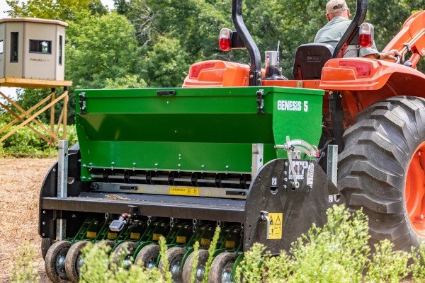Designed by hunters for hunters, the Genesis 5 is our best-selling no-till drill. This powerful machine allows you to preserve soil moisture, boost germination rates, and save time and money. With a 60" working width and 8 cutting elements, the Genesis 5 can plant up to 1 acre in just 33 minutes. Capable of speeds up to 3mph, this drill is perfect for all your food plot planting needs. If you're serious about planting food plots, the Genesis 5 is the tool you need to get the job done quickly and efficiently, all while maintaining the integrity of your land.