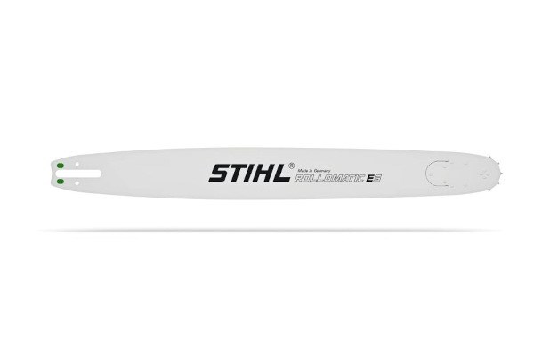 The STIHL ROLLOMATIC® E Super guide bar is a solid-machined bar made of high-grade steel with the groove milled out and a replaceable sprocket nose assembly riveted in place. The sprocket is incorporated in the replaceable sprocket nose assembly of the bar and carries the saw chain from the top to the bottom of the bar. This not only reduces wear, but also enables the bar nose to be made considerably narrower. This type of construction is an advantage where extensive use is made of the bar nose (i.e. limbing and boring). All STIHL ROLLOMATIC® bars designed with a narrow nose help reduce kickback tendencies. And the sprocket nose assembly can be replaced several times before the whole bar is due for replacement, increasing the service life of the bar.