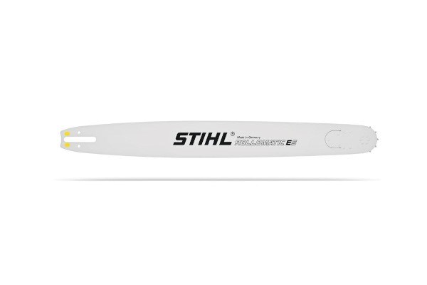 The STIHL ROLLOMATIC® E Super guide bar is a solid-machined bar made of high-grade steel with the groove milled out and a replaceable sprocket nose assembly riveted in place. The sprocket is incorporated in the replaceable sprocket nose assembly of the bar and carries the saw chain from the top to the bottom of the bar. This not only reduces wear, but also enables the bar nose to be made considerably narrower. This type of construction is an advantage where extensive use is made of the bar nose (i.e. limbing and boring). All STIHL ROLLOMATIC® bars designed with a narrow nose help reduce kickback tendencies. And the sprocket nose assembly can be replaced several times before the whole bar is due for replacement, increasing the service life of the bar.