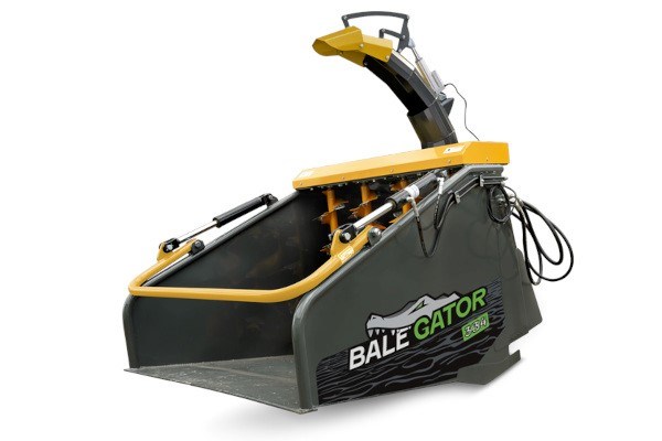 The Bale Gator 334 features a compact design to allow mobility and flexibility while delivering optimum performance in confined spaces and tight corners. It also allows for small skid-steers or even mini skid-steers to handle safely and efficiently. Fully remote control functions creates easy hookup and no wire harness to fail or damage