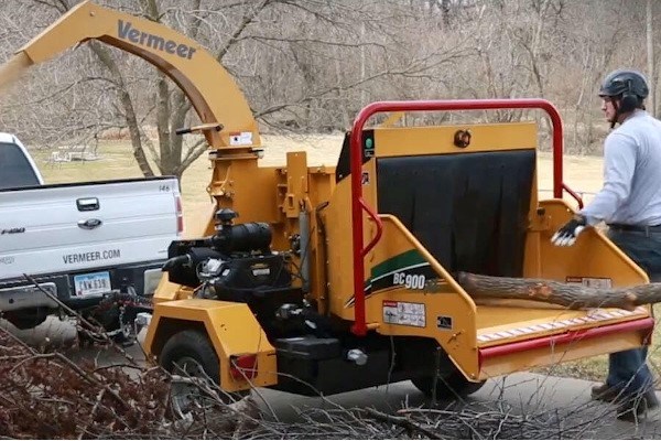 The large infeed opening simplifies feeding irregular material and reduces the need for crosscuts before feeding the chipper.