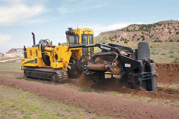 An oscillating track frame allows the track to follow the ground’s contour, providing a vertical trench on slopes up to 10.5°.