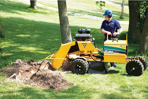 The self-propelled SC292 stump cutter, equipped with a 26.5-hp (19.8-kW) EFI Relhko engine, delivers full-sized power in a compact unit and starts easily with electronic fuel injection.