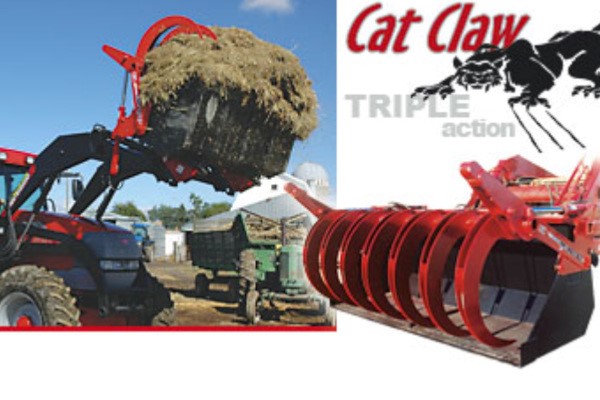 The new patented GF-84-3D Cat Claw is a new generation grab fork designed with compound capabilities, multiple movements, and triple actions. The massive V-shaped curved teeth have a distinctive tapered design and built-in bracing to handle increased side pressures to resist twisting. It crushes, it pulls, it fills and handles many unforgiving, hard to handle loads with ease. Note:Only available for loaders with Large Capacity Bucket capabilities.