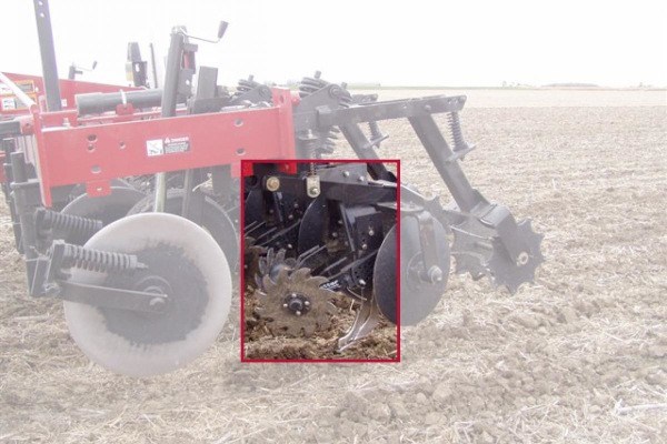 The 2967-038 Floating Row Cleaner for Case IH and HCS Shanks clears residue while making strips and placing fertilizer. Set the residue manager to run floating or pin it in a rigid position.