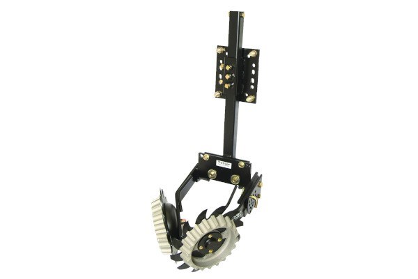 The tool-mounted 2967-039 Row Cleaner for Fertilizer Toolbars provides residue management before planting. The universal, adjustable mounting bracket controls residue manager height relative to the toolbar height. The floating row cleaner clears residue while making strips before planting.