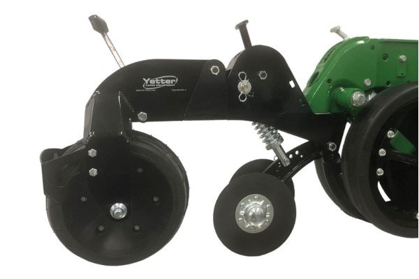 The Furrow Max Closing System features multiple pressure settings that operate independently, and it helps overcome challenging planting conditions. First, closing discs successfully eliminate the compacted seed trench sidewall, then they press soil firmly back around the seed. The pressing action of the firming wheel reduces air pockets, increasing crucial seed-to-soil contact and conserving moisture.