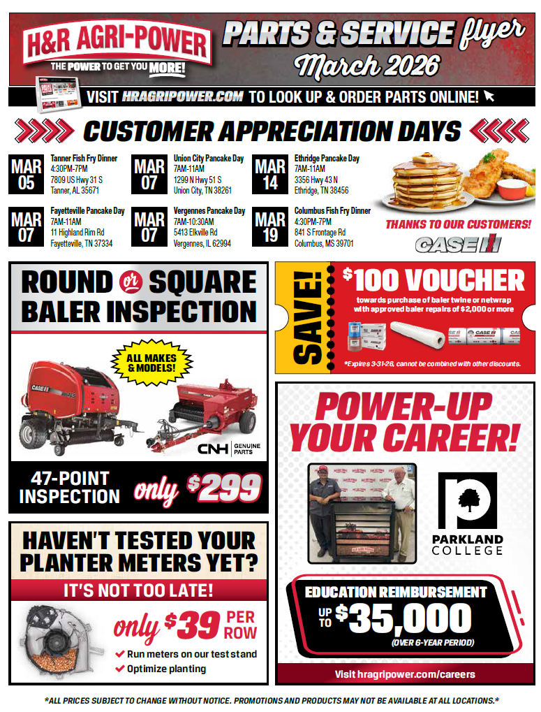 H&R Agri-Power offers exclusive monthly parts and service specials designed to help customers save on essential maintenance and repairs. These deals ensure that your equipment stays in top condition with discounts on parts, labor, and service packages.